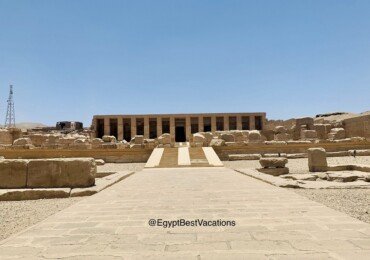 Dendera Temple is the temple of Hathor, the goddess of joy. It looks bright and colorful with artwork. The ceilings depict images of zodiacs. The columns hold beautiful carvings. You go upstairs to the rooftop for views across the desert. There are brilliant photo opportunities inside the temple. It is less crowded than major temples, and Dendara allows time for quiet admiration of its beauty.