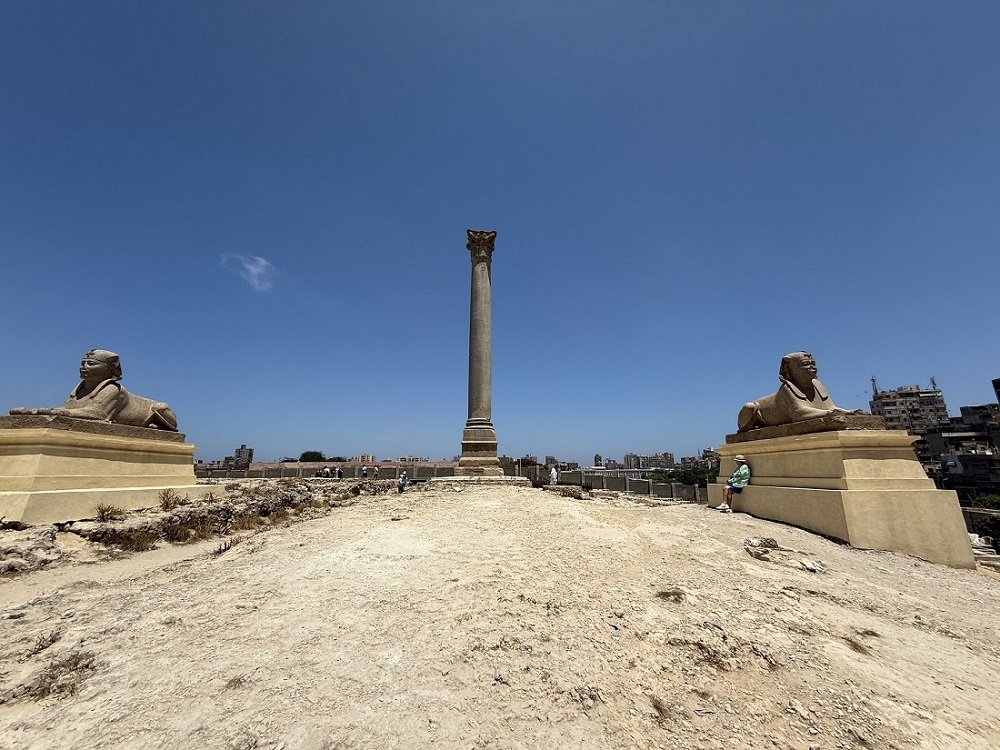 From the catacombs to the Pompey’s Pillar. Many of the ancient historians did not tell us more details about the “Pompey’s Pillar” but about the buildings that stood nearby and have disappeared now. The hill on which the pillar is erected was covered with temples and houses a long time before the Roman era. It was the place of the Citadel of Rhakotis. A temple was dedicated to Osiris-Serapis was built on the mountain.