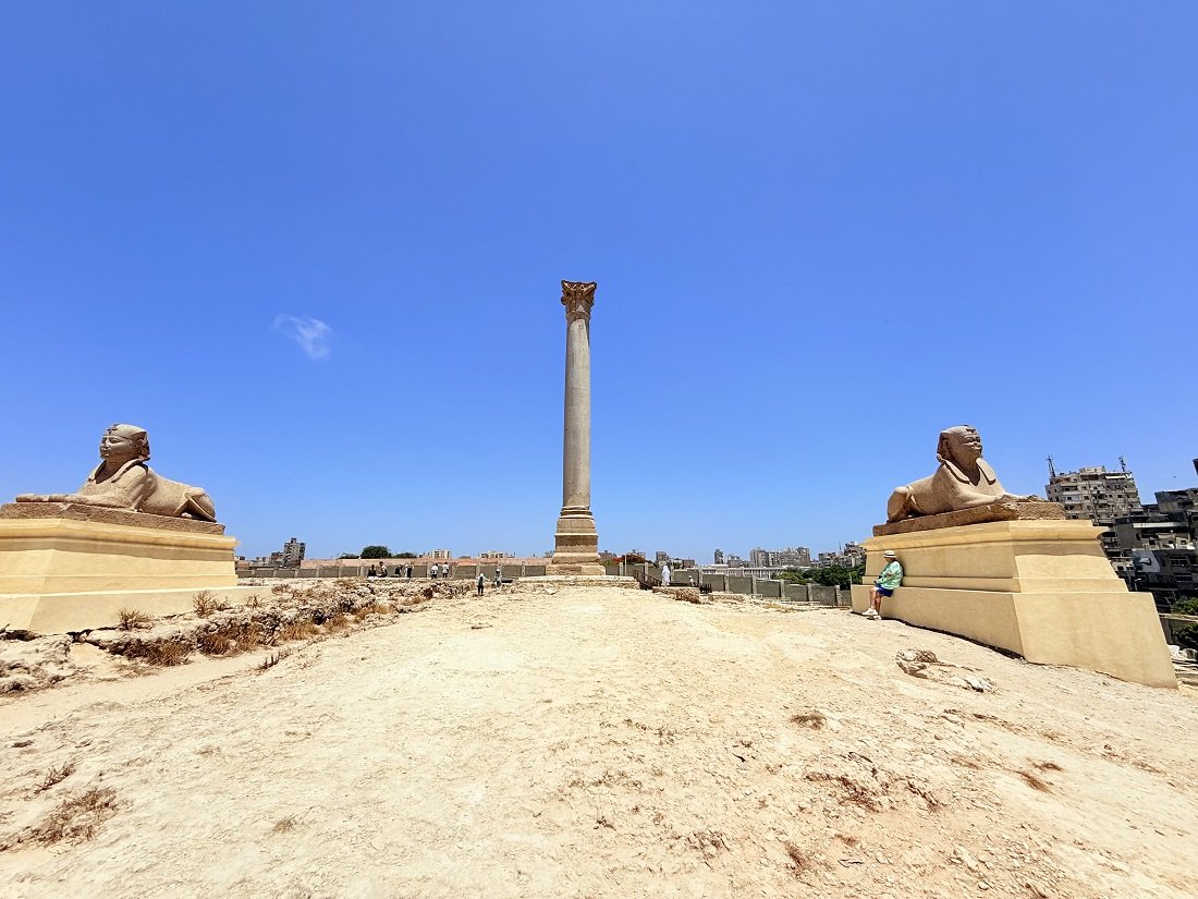 From the catacombs to the nearby Pompey’s Pillar. Many of the ancient historians did not tell us more details about the “Pompey’s Pillar” but about the buildings that stood nearby and have disappeared now. The hill on which the pillar is erected was covered with temples and houses a long time before the Roman era. It was the place of the Citadel of Rhakotis. A temple was dedicated to Osiris-Serapis was built on the mountain.